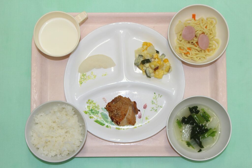 ご飯 鶏肉のごま味噌焼き マセドアンサラダ