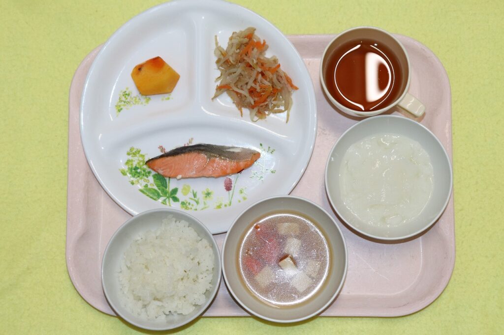 ごはん 鮭の塩焼き もやしの和え物