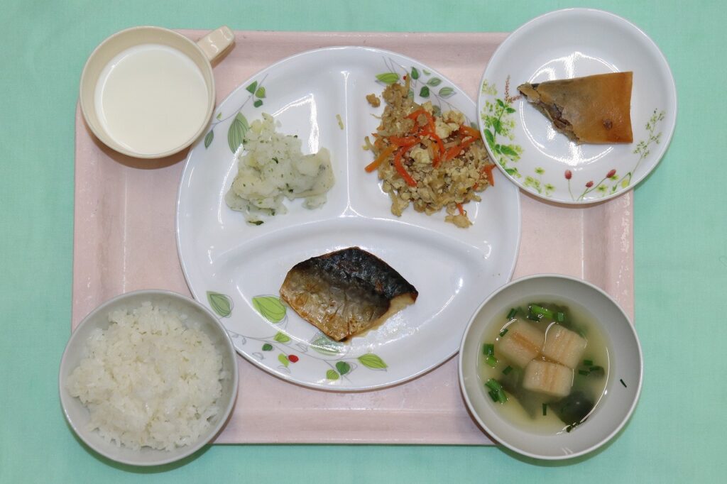 ご飯 鯖の塩焼き カレーチャンプル―