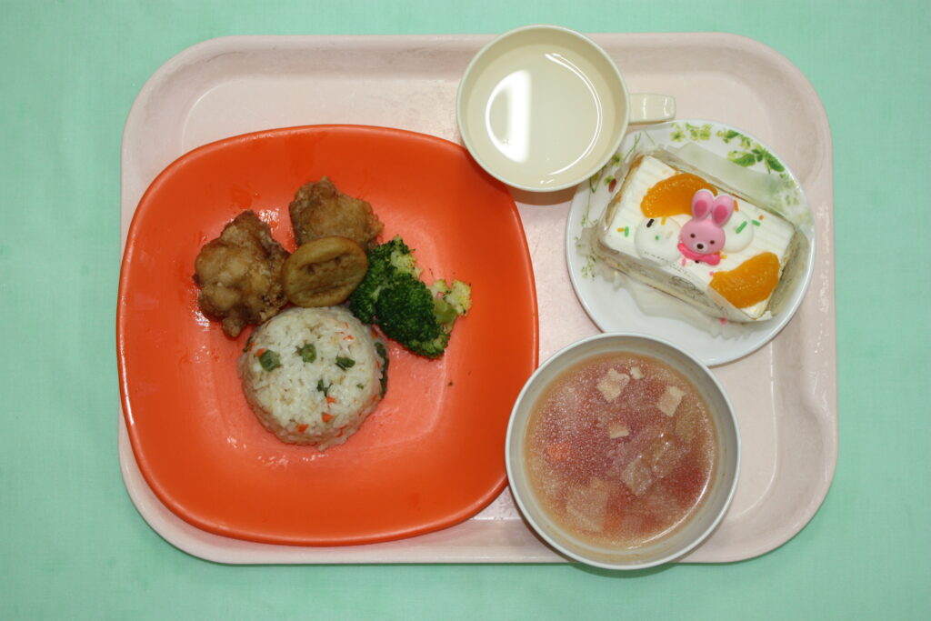 ピラフ 鶏肉の唐揚げ アンパンマン風ポテト