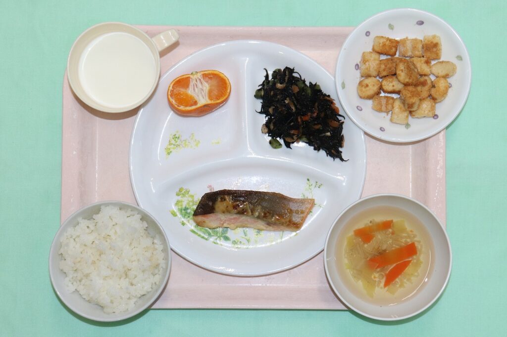 ご飯 鮭のマヨネーズ焼き ひじきの炒り煮