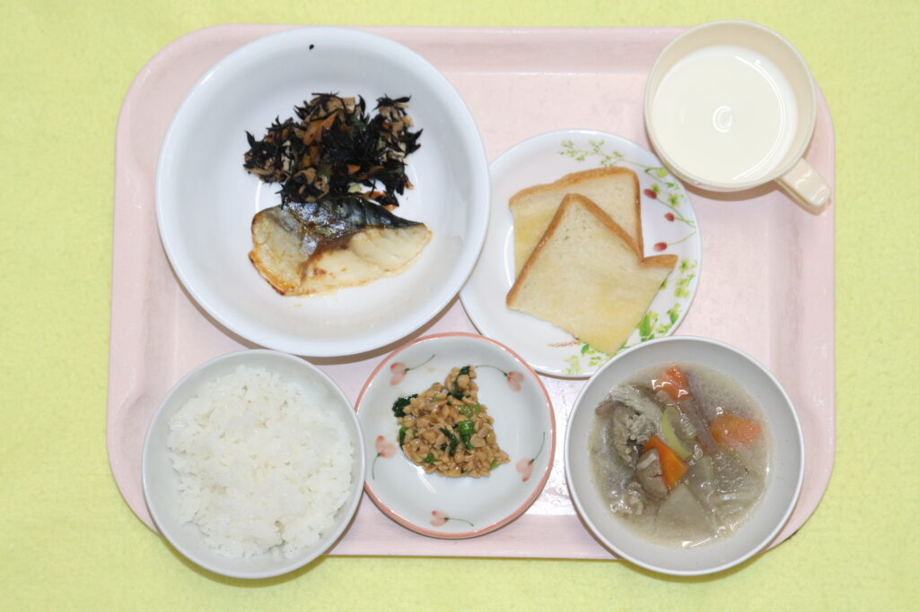 ごはん 鯖の塩焼き ひじきの炒り煮